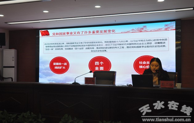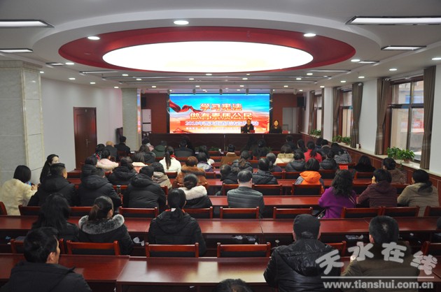 為了更好的學(xué)習(xí)貫徹習(xí)近平新時(shí)代中國(guó)特色社會(huì)主義思想和黨的十九大精神,加強(qiáng)對(duì)新修訂《中華人民共和國(guó)憲法》的學(xué)習(xí)宣傳和貫徹實(shí)施,不斷增強(qiáng)街道干部職工的憲法意識(shí),引領(lǐng)全轄區(qū)形成尊崇憲法、學(xué)習(xí)憲法、遵守憲法、維護(hù)憲法的濃厚氛圍。近日,秦州區(qū)西關(guān)街道組織開(kāi)展了“憲法知識(shí)”宣講活動(dòng),會(huì)議由街道辦主任主持,特邀甘肅端方律師事務(wù)所律師彭二玲律師進(jìn)行了憲法知識(shí)專題講座,街道領(lǐng)導(dǎo)班子成員、黨員干部及轄區(qū)居民共計(jì)100余人聆聽(tīng)了此次講座。