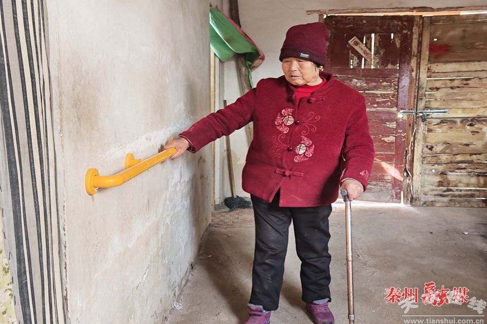 “政府很好,給我安裝了上廁所的扶手、坐便、洗澡的椅子、拐杖、廚房的櫥柜,幫助大得很,沒(méi)有這些東西我不能動(dòng)彈,首先護(hù)欄方便、扶手方便、坐便方便、洗澡的椅子方便、拐杖更方便,殘聯(lián)的人經(jīng)常來(lái),對(duì)我很好。”秦州區(qū)中梁鎮(zhèn)金李村村民、肢體二級(jí)殘疾人師巧英說(shuō)。