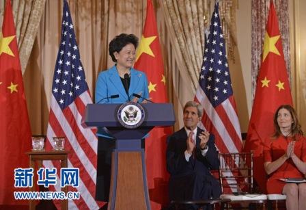 新華網(wǎng)華盛頓11月21日電 國(guó)務(wù)院副總理劉延?xùn)|21日在華盛頓與美國(guó)國(guó)務(wù)卿克里共同主持第四輪中美人文交流高層磋商。
