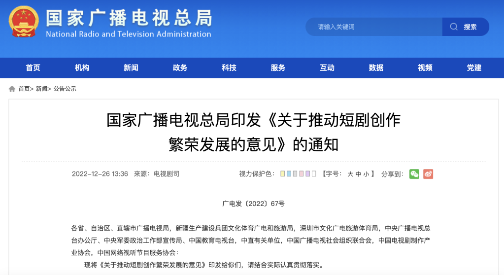根據(jù)意見,短劇通常采用單集時長15—30分鐘的系列劇、集數(shù)在6集內(nèi)的系列單元劇、20集內(nèi)的連續(xù)劇、周播劇等多種形態(tài),具有篇幅短小、內(nèi)容精煉、情節(jié)緊湊等特點,與中長劇集、微短劇、短視頻等優(yōu)勢互補、各展所長。