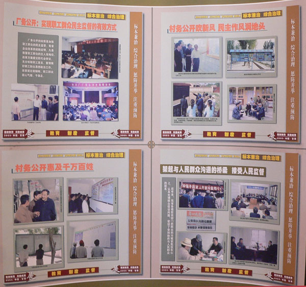 為了配合正在全省開(kāi)展的保持共產(chǎn)黨員先進(jìn)性教育活動(dòng),深入學(xué)習(xí)宣傳和貫徹落實(shí)中央關(guān)于《建立健全教育、制度、監(jiān)督并重的懲治和預(yù)防腐敗體系實(shí)施綱要》,由省紀(jì)委、省委組織部、省委宣傳部、省監(jiān)察廳主辦,省高級(jí)人民法院、省人民檢察院、省直機(jī)關(guān)工委、甘肅報(bào)業(yè)集團(tuán)、甘肅省廣播電影電視總臺(tái)協(xié)辦,精心籌備舉辦的《甘肅省反腐倡廉大型展覽》巡回展今天在我市開(kāi)展了。展覽以“三個(gè)代表”重要思想為指導(dǎo),全面回顧了我們黨領(lǐng)導(dǎo)反腐敗斗爭(zhēng)的光輝歷程,充分展示了我省近年來(lái)黨風(fēng)廉政建設(shè)和反腐敗斗爭(zhēng)取得的成果,是對(duì)全市廣大黨員干部一次形象生動(dòng)的反腐倡廉教育,對(duì)于進(jìn)一步推動(dòng)全市反腐倡廉工作,促進(jìn)全市經(jīng)濟(jì)、社會(huì)發(fā)展必將起到重要作用。