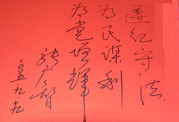 市長(zhǎng)張廣智在《甘肅省反腐倡廉大型展覽》巡回展天水現(xiàn)場(chǎng)留言