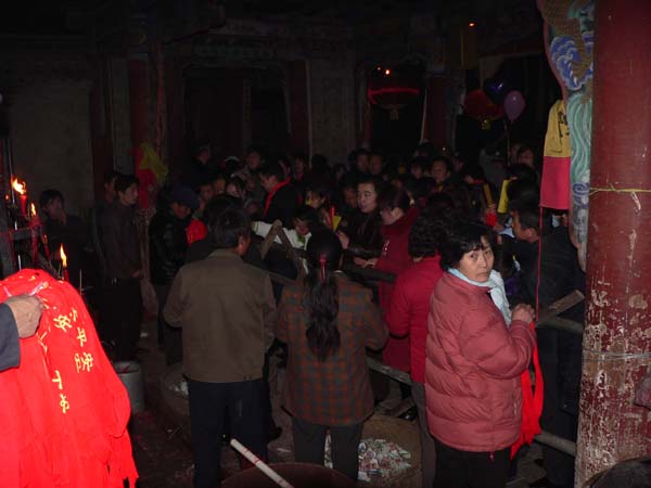 農(nóng)歷初八夜間,雖然天靖山上積雪還未完全消融,但自山腳直到玉泉觀玉皇殿及最高處三清殿,人們扶老攜幼,摩肩接踵,觀內(nèi)人潮涌動(dòng),熱鬧非凡。玉皇殿是更是被圍得水泄不通,正月初九凌晨,人們爭先恐后要為玉皇大帝點(diǎn)燃第—柱香,氣氛十分火爆。此時(shí),各殿堂燈火通明,香燭裊裊,旗幡飄舞,鐘磬齊鳴。