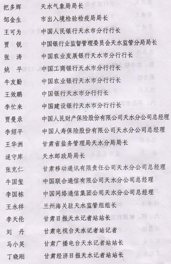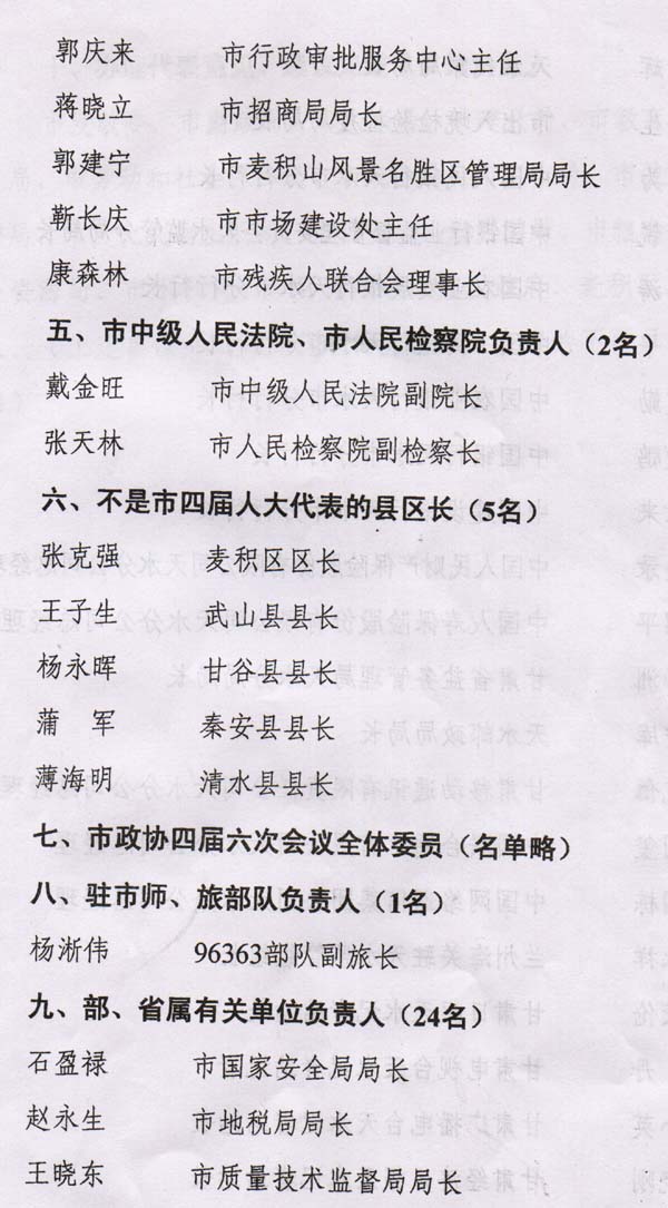 天水市第四屆人民代表大會(huì)第七次會(huì)議列席人員名單