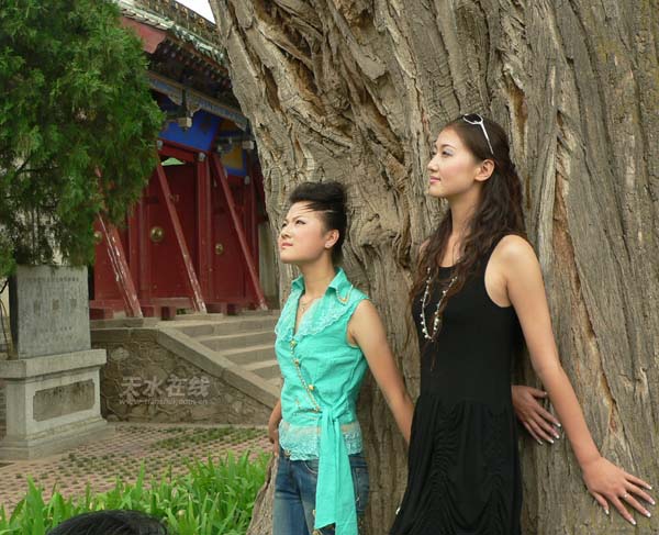 圖為6月26日第七屆CCTV超級模特大賽“金莎會杯”天水選拔賽暨2006伏羲文化旅游節(jié)禮儀模特大賽模特在南郭寺走“秀”。