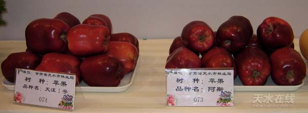 在展評活動中,我市參評的花牛系列蘋果共獲得了12個獎項。其中:由秦安縣選送的秦富1號富士蘋果獲一等獎(全國蘋果共3個一等獎);由麥積區(qū)選送的瓦里短枝和清水縣選送的金冠兩個蘋果品種獲二等獎(全國蘋果共5個二等獎);由天水市果業(yè)局選送的長富2號、宮崎富士,天水市果樹研究所選送的天富1號,秦州區(qū)選送的哈蒂、俄矮2號,清水縣選送的天汪1號、壽紅富士,麥積區(qū)選送的首紅,秦安縣選送的長富2號等九個蘋果品種獲得三等獎(全國蘋果共40個三等獎)。