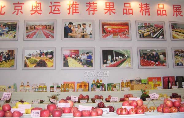 【天水在線訊】12月20日,2007中國國際林業(yè)博覽會在北京全國農(nóng)業(yè)展覽館隆重舉行,2008北京奧運推薦果品暨奧運花卉展評活動同時舉辦。此次展評活動由中國國際林業(yè)產(chǎn)業(yè)博覽會組委會、中國林業(yè)產(chǎn)業(yè)協(xié)會、2008北京奧運推薦果品評選委員會、中國果品流通學(xué)會等八家單位共同主辦。