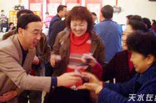 (中國(guó)之音總裁謝建華、農(nóng)民日?qǐng)?bào)甘肅記者站站長(zhǎng)吳曉燕、天水市國(guó)稅局局長(zhǎng)關(guān)云峰在天水市特殊教育學(xué)校)