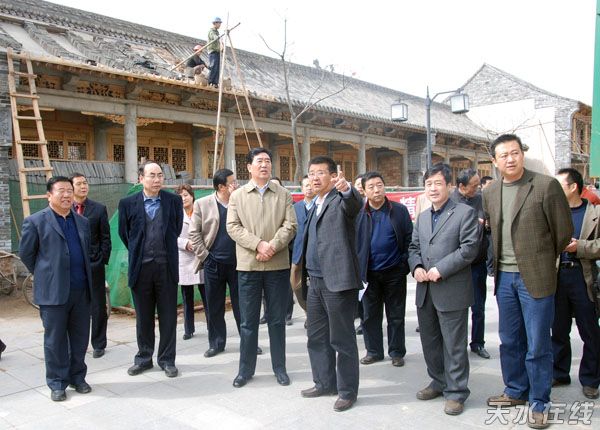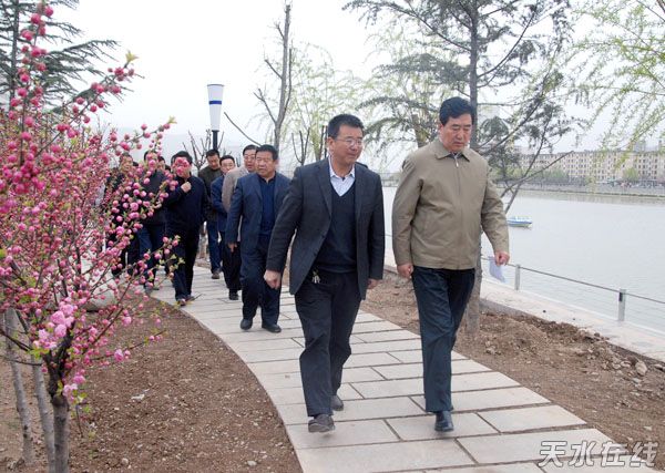 當(dāng)天上午,張景輝、李文卿一行先后來到人民公園、青年南北路改造工地、天水湖管理處、瀛池大橋建設(shè)工地、伏羲城、天河廣場、天河家園等地,詳細(xì)了解了城市基礎(chǔ)設(shè)施建設(shè)、歷史文化名城保護(hù)以及生態(tài)環(huán)境建設(shè)等方面的情況。在人民公園,張景輝、李文卿指出,公園的改造要保留原有風(fēng)格、風(fēng)貌,更新完善現(xiàn)有的設(shè)施,真正給市民提供一處休閑的公共場所。在瀛池大橋建設(shè)工地,張景輝、李文卿說,作為項(xiàng)目所在的縣區(qū)要高度重視項(xiàng)目工作,給項(xiàng)目的建設(shè)創(chuàng)造良好環(huán)境,在拆遷方面,要和諧拆遷,根據(jù)國家的有關(guān)政策,解決好拆遷補(bǔ)償工作。在聽取了伏羲城建設(shè)的匯報(bào)后,張景輝、李文卿要求,伏羲城的保護(hù)建設(shè)要堅(jiān)持保護(hù)為主,整修為輔,設(shè)施配套,風(fēng)貌協(xié)調(diào)的原則,對大小巷道、歷史街區(qū)、古民居院落進(jìn)行修繕保護(hù)。當(dāng)看到天河家園幼兒園里活潑可愛的小朋友時(shí),張景輝、李文卿說,兒童是祖國的未來,要切實(shí)加強(qiáng)管理,辦好幼兒教育,把孩子在幼兒園的點(diǎn)點(diǎn)滴滴刻成光盤,記錄下來,給孩子留下童年的美好回憶。