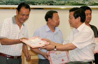 火炬手蘭天集團董事長張建友在傳遞火炬