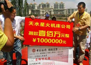 7月7日,火炬手李維謙(天水星火公司董事長)在進行傳遞。