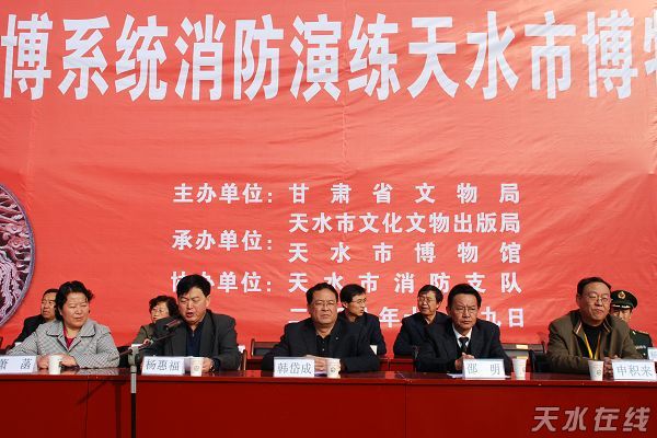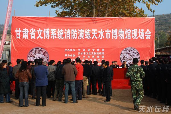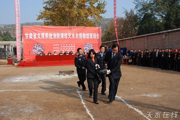 11月9日是全國第十八個(gè)“119”消防宣傳活動(dòng)日。甘肅省文博系統(tǒng)消防滅火演練活動(dòng)在全國重點(diǎn)文物保護(hù)單位——天水伏羲廟成功舉辦。甘肅省文化廳廳長邵明,甘肅省文物局副局長楊惠福,天水市委常委、政法委書記韓岱成,天水市人大常委會副主任申積來,天水市副市長蕭菡以及天水市公安局、天水市消防支隊(duì)有關(guān)單位負(fù)責(zé)人和來自全省各州市文博系統(tǒng)的干部職工150余人參加了活動(dòng)!