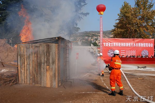 甘肅省文化廳廳長邵明在演練現(xiàn)場說:“天水消防部隊(duì)是一支久經(jīng)考驗(yàn)、能打大仗打惡仗特別有戰(zhàn)斗力的英雄集體,今年在“5.12”抗震救災(zāi)中為黨和人名立了大功。有這樣一支英雄的消防部隊(duì)做守護(hù)神,天水這座歷史文化名城的消防安全工作是有保障的!