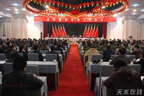 【本報訊】(記者李海峰實習生王小亞) 1月8日下午,全市政法維穩(wěn)工作會議在天水迎賓館召開。會議傳達貫徹全國、全省政法工作會議精神,總結2008年全市政法維穩(wěn)工作,分析研究當前面臨的形勢,安排部署今年和今后一個時期全市政法維穩(wěn)工作。