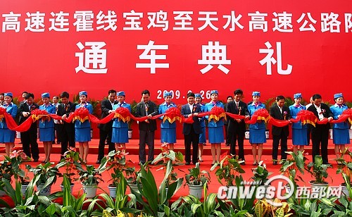 這看起來(lái)似乎和寶天高速無(wú)關(guān),但實(shí)際是緊密相連:3個(gè)月后的9月27日,寶天高速公路全線通車,這條黃金線路一頭連接關(guān)中,一頭牽著天水,大大加強(qiáng)了經(jīng)濟(jì)區(qū)的交通骨架力量。寶雞、天水,這兩個(gè)遙相呼應(yīng)、一老一新的工業(yè)城市,將因?qū)毺旄咚俟、關(guān)中天水經(jīng)濟(jì)區(qū)實(shí)現(xiàn)自身發(fā)展的一次飛躍。東部和西部,也將因連霍線寶天高速公路的貫通,經(jīng)濟(jì)血液的循環(huán)更加暢通。