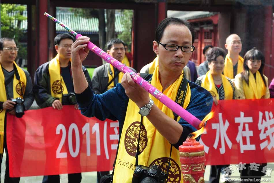 為了弘揚(yáng)伏羲文化,傳承中華文明,天水在線聯(lián)合秦州區(qū)文聯(lián)于2011(辛卯)年9月12日(中秋節(jié))上午9時50分,在伏羲廟內(nèi)隆重舉行祭祀伏羲典禮。在天水在線博客“安家落戶”的50多位博主和秦州區(qū)文聯(lián)的全體人員懷崇敬之心,按照鳴樂、明燭、上香、恭讀祭文、敬獻(xiàn)花籃、瞻仰伏羲圣像、行三鞠躬禮等儀式祭拜人文始祖伏羲。