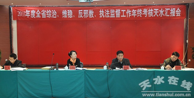 市委書記馬世忠在匯報會上就貫徹落實考核組的要求、加強和創(chuàng)新社會管理、全力維護社會大局和諧穩(wěn)定講話強調,各縣區(qū)、政法部門要切實提高對政法維穩(wěn)工作重要性的認識,正確處理經濟發(fā)展與社會穩(wěn)定的關系,認真解決好社會轉型期出現的各種復雜矛盾和問題。加強和創(chuàng)新社會管理機制體制,完善相關制度,努力從源頭上、根本上、基礎上解決問題;要全面落實社會管理綜合治理的各項措施,高度重視涉法涉訴上訪問題,進一步完善黨委領導、政府負責、社會協同、公眾參與的社會管理格局;各級黨政組織要切實承擔起“保一方平安”的政治責任,切實強化各級領導干部抓綜治工作、維護社會穩(wěn)定的責任意識;要發(fā)揮綜治聯席會議的作用,進一步細化任務,強化督促檢查,嚴格年度考核,確保社會管理綜合治理、維穩(wěn)、反邪教等各項工作措施落到實處、取得實效;要全力抓好社會矛盾排查、社會管理創(chuàng)新、公正廉潔執(zhí)法三項重點工作,努力建設一支政治堅定、業(yè)務精通、作風優(yōu)良、執(zhí)法公正的高素質政法隊伍,著力提升處突反恐能力和水平,進一步提高動態(tài)環(huán)境下駕馭社會治安的能力;要把社會治安綜合治理、矛盾糾紛排查調處、交通秩序整頓等作為“八項集中整治”活動的重點,進一步強化措施,嚴密組織,抓深入、抓難點、抓典型、抓整改、抓提高,務求取得新的成效,深入推進“平安天水”建設。