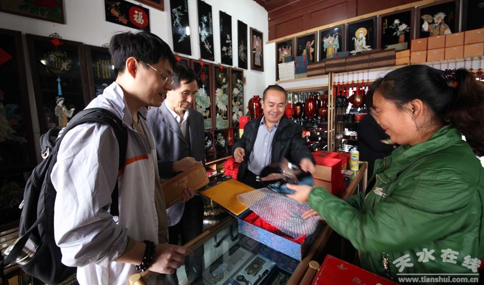 (伏羲城內(nèi)的雕漆旅游商品受到游客的青睞)