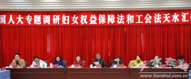 在當(dāng)日召開的調(diào)研座談會(huì)上,調(diào)研組聽取了我市婦女權(quán)益保障工作情況的匯報(bào),并與市法院、婦聯(lián)、人社、安監(jiān)等部門座談交流,了解城鄉(xiāng)經(jīng)濟(jì)社會(huì)發(fā)展對(duì)婦女權(quán)益產(chǎn)生的影響、農(nóng)村婦女婚姻狀況改變對(duì)其土地承包權(quán)益及相關(guān)經(jīng)濟(jì)權(quán)益的影響、新形勢(shì)下保障婦女勞動(dòng)就業(yè)權(quán)益存在的問題、執(zhí)法中遇到的新情況等,聽取我市解決這些問題的意見和建議。市委常委、常務(wù)副市長(zhǎng)郭奇若,市人大常委會(huì)副主任、市總工會(huì)主席黃孝榮出席座談會(huì)。