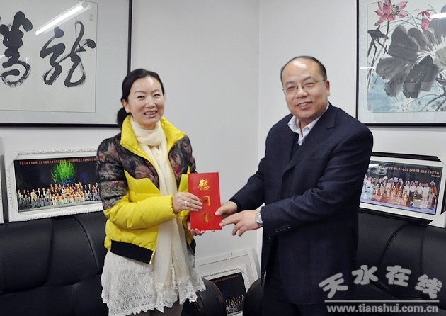 1月22日下午,天水市委常委、宣傳部長(zhǎng)彭鴻嘉來(lái)到市秦劇團(tuán),看望慰問(wèn)了天水市領(lǐng)軍人才袁丫丫,向她致以新春的問(wèn)候和誠(chéng)摯的祝福。