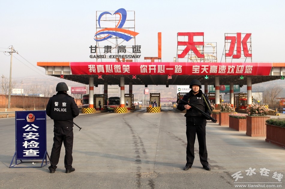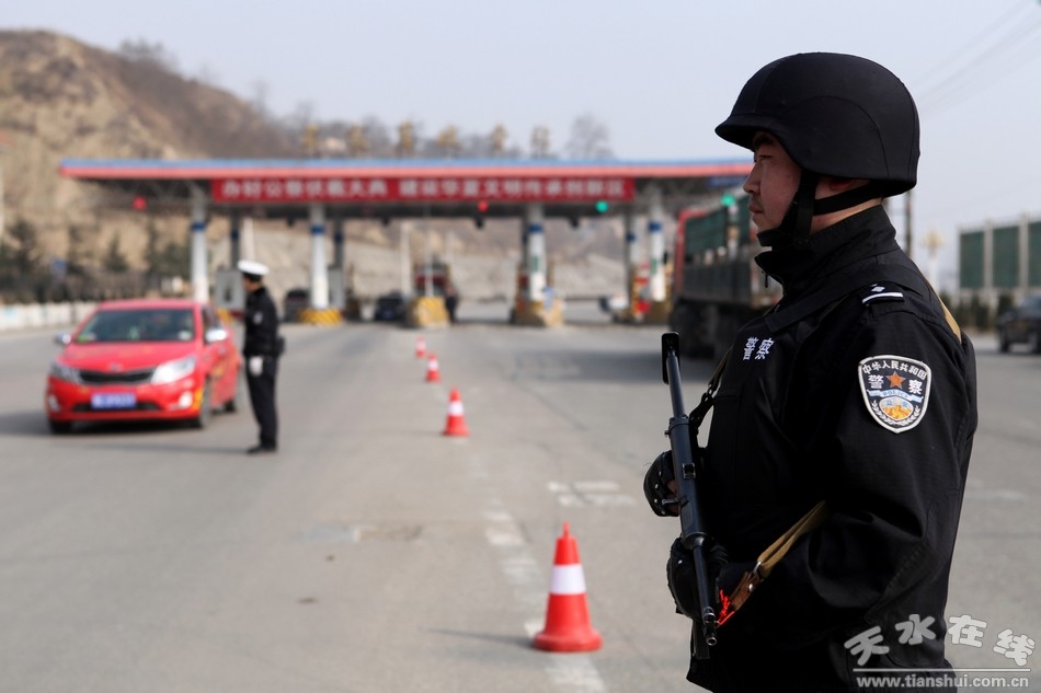 (圖為特警在麥積區(qū)吳家崖收費(fèi)站值勤)