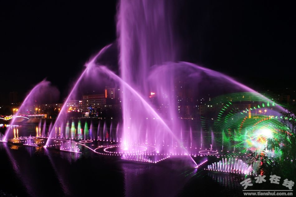 6月17日晚,藉河風情立體噴泉精彩上演。據(jù)悉,藉河風情線噴泉項目是今年市、區(qū)兩級政府確定的城市重點建設(shè)項目之一,由秦州區(qū)住建局具體負責實施。噴泉項目位于藉河風情線3號橡膠壩至4號橡膠壩段水體內(nèi),噴泉水源利用天水湖橡膠壩內(nèi)的蓄水,對水體無污染。整個項目包括噴泉、觀景平臺和浮筒筏低水池建設(shè)等,其中噴泉最大長度為160米,最大寬度為30米;觀景平臺位于河堤南岸。藉河風情線噴泉是集聲、光、水、電、圖像為一體的高雅文化藝術(shù),將多種自然景觀和天水的歷史文化有機融合,通過水幕展現(xiàn)在市民面前。