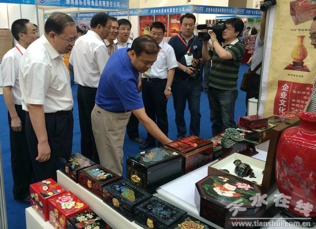 本屆“蘭洽會”商品貿(mào)易展,省上分配我市十二個標(biāo)準(zhǔn)展位,我市共組織16家企業(yè)參展,展銷商品有21個大類300多個品種。主要包括天水漆器、武山鴛鴦玉、清真食品、甘谷雜糧、秦安花椒、天河春系列酒、武山龍泉柳編等。