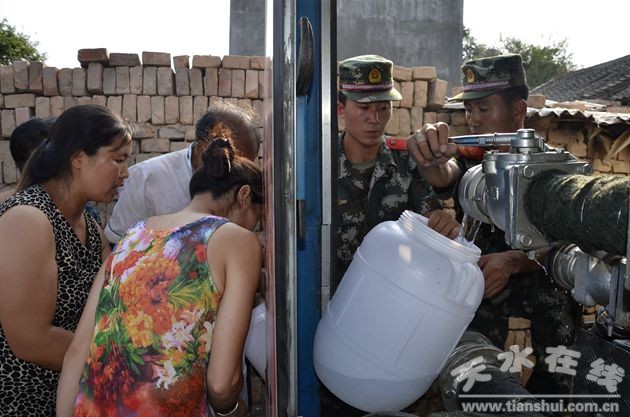 (消防官兵為秦州區(qū)王家半坡居民免費送水)