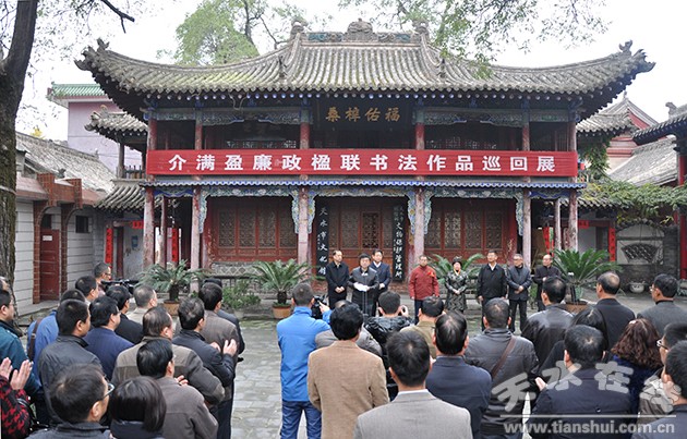 11月5日,天水市人大常委會(huì)原副主任介滿盈廉政楹聯(lián)書法作品巡回展天水展在天水市文化館開(kāi)展。