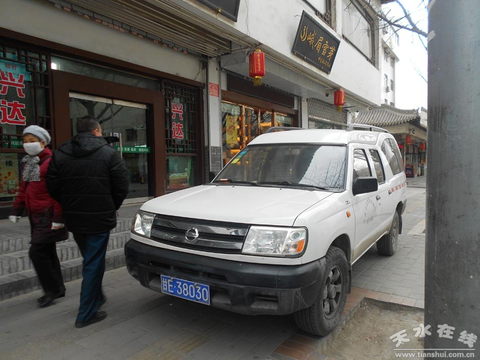 ▲秦州區(qū)執(zhí)法局曝光12月15日拍攝的亂停亂放的車(chē)輛 9時(shí)54分民主東路凱悅大酒店對(duì)面人行道上