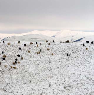 車過甘泉,一路美景讓人目不暇接,一片潔白的世界里,一個個村莊掩映在白雪與山巒之間,就像一幅幅令人陶醉的油畫!