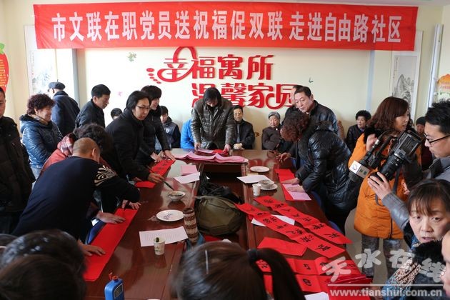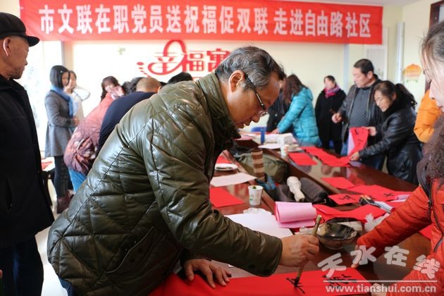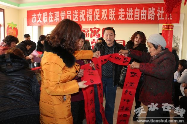 2015年天水市委宣傳部,市文聯(lián),迎春納福,送春聯(lián),送萬(wàn)福、進(jìn)萬(wàn)家系列活動(dòng)之三,走進(jìn)厚生巷社區(qū)。