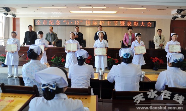 為進(jìn)一步弘揚(yáng)南丁格爾甘于奉獻(xiàn)、救死扶傷、勇于獻(xiàn)身的人道主義精神,團(tuán)結(jié)和激勵(lì)廣大護(hù)理工作者忠實(shí)履行救死扶傷、服務(wù)人民的神圣職責(zé),5月8日,天水市衛(wèi)生計(jì)生委在市中醫(yī)院住院樓16樓多功能會(huì)議室隆重舉行全市衛(wèi)生計(jì)生系統(tǒng)紀(jì)念“5·12”國(guó)際護(hù)士節(jié)暨表彰大會(huì)。市衛(wèi)生計(jì)生委領(lǐng)導(dǎo)班子成員,各縣區(qū)衛(wèi)生計(jì)生局(衛(wèi)生局)、市直各醫(yī)療機(jī)構(gòu)負(fù)責(zé)人以及來(lái)自全市臨床護(hù)理一線優(yōu)秀護(hù)士、護(hù)士長(zhǎng)代表共130余人參加會(huì)議。
