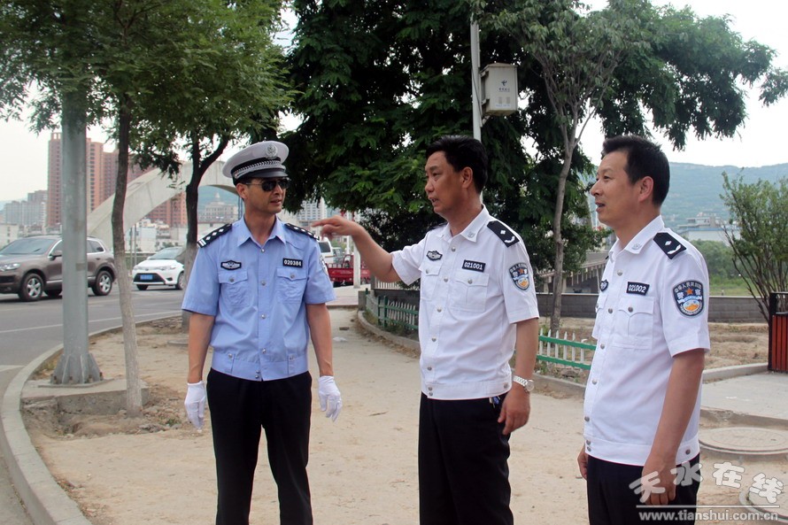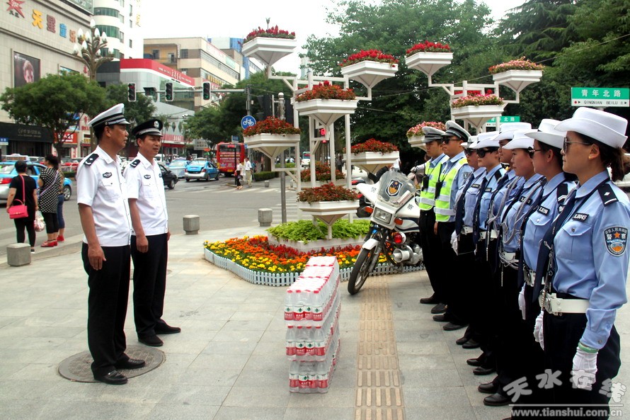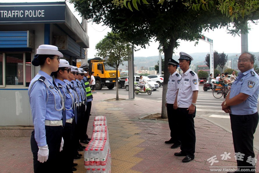 6月19日下午,天水市公安局黨委委員、交警支隊支隊長楊金生,政委毛建民帶領支隊辦公室人員,先后深入秦州公安分局城區(qū)交警大隊大十字女警形象崗、卦臺山大隊天巉公路天水收費站大型貨車交通管制分流執(zhí)勤點、麥積公安分局交警大隊一號橋頭崗亭、機動大隊迎賓橋勤務點等地,代表支隊黨總支親切看望慰問了放棄休假、冒高溫酷暑奮戰(zhàn)在2015(乙未)年甘肅省公祭中華人文始祖伏羲大典暨第二十六屆中國天水伏羲文化旅游節(jié)交通保障工作一線的交通民警及協(xié)管員。