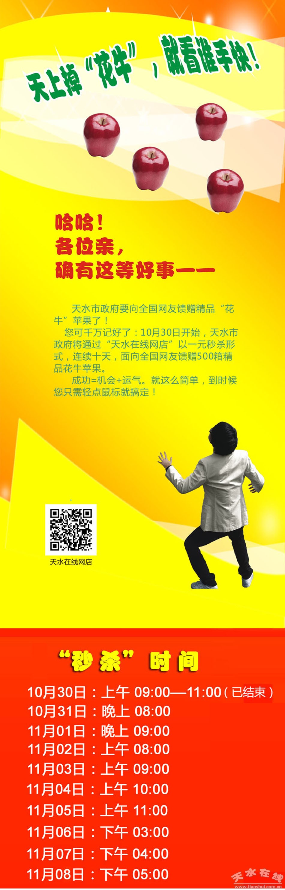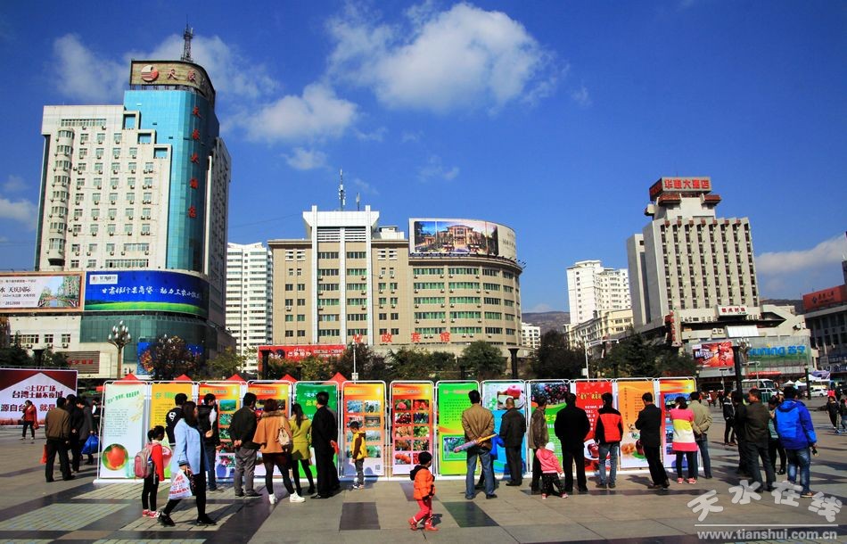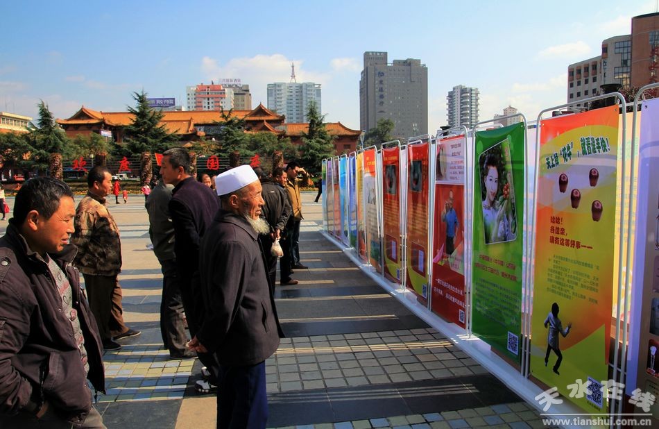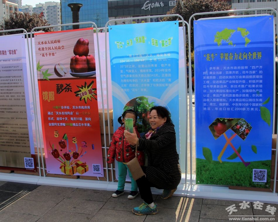 10月31日,30塊“花!碧O果宣傳展板在龍城廣場展出,吸引了眾多市民圍觀。據(jù)悉,這些宣傳展板是為10月30日上午在蘭州舉行的天水花牛蘋果及果業(yè)宣傳推介會由天水市林業(yè)局和天水在線專門設(shè)計制作的。