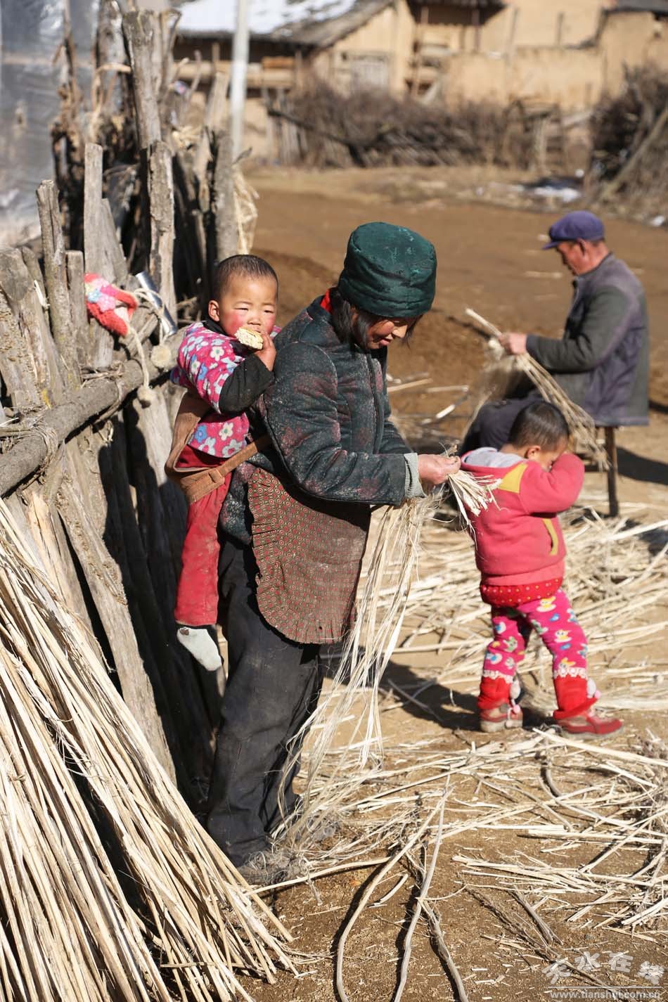 你看這背著孫子干活的孩子奶奶,和一旁剝著大麻的孩子爺爺,還有院子里抱著孩子的小媳婦,就是這里普遍的生活現(xiàn)狀。生活就如一團(tuán)麻,就等麻換錢(qián),錢(qián)換生活……