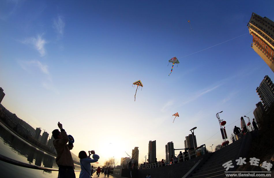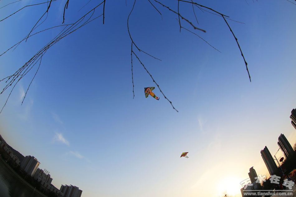 ▲紙鳶飛舞春來(lái)到 天水在線2月27日攝于天水湖畔