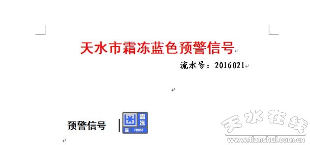 天水市氣象臺(tái)2016年4月15日18時(shí)10分發(fā)布霜凍藍(lán)色預(yù)警信號(hào):