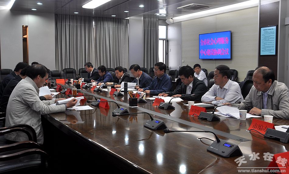 5月6日,天水市委常委、政法委書記趙衛(wèi)東主持召開天水市社會心理健康服務中心建設協(xié)調(diào)會議,專題研究天水市社會心理健康服務中心建設事宜。市委組織部、市委宣傳部、市綜治辦、市衛(wèi)計委、市人社局、市財政局、市民政局、市編辦、市公安局、市司法局、市教育局、市婦聯(lián)、市殘聯(lián)、市公共資源交易中心、市電信公司、市第三人民醫(yī)院等部門單位負責同志參加了會議。