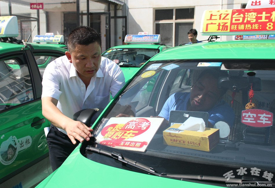 本次活動以羲通公交集團(tuán)和兩區(qū)10家出租車公司236輛運(yùn)營車輛為主,涵蓋所有公交線路和公交車輛,參加活動的公交車和出租車,要求必須保證車輛技術(shù)狀況良好,衛(wèi)生環(huán)境整潔,駕駛員符合規(guī)定資格并具有較高的服務(wù)水準(zhǔn)。車輛前擋風(fēng)玻璃處張貼“高考免費(fèi)愛心車”標(biāo)識。6月7日至8日高考期間,高考服務(wù)車將增加城區(qū)居民區(qū)、學(xué)生集中住宿點(diǎn)等主要考點(diǎn)的運(yùn)行頻率。對持有2016年高考準(zhǔn)考證的考生,在趕赴考點(diǎn)參加考試和考試結(jié)束返程過程中,參加活動的車輛為考生提供免費(fèi)運(yùn)輸服務(wù)。同時運(yùn)管局鼓勵各公司結(jié)合實(shí)際,以本活動內(nèi)容為基礎(chǔ),為考生提供更加優(yōu)質(zhì)完善的運(yùn)輸服務(wù)。要求各公司對參加活動的駕駛員應(yīng)進(jìn)行統(tǒng)一培訓(xùn),使駕駛員掌握活動要求,提高服務(wù)意識。高考期間,要求所有參加高考服務(wù)的車輛駕駛員途經(jīng)考點(diǎn)路段時,慎駕慢行、嚴(yán)禁鳴笛,為考生營造一個安全出行、安心考試的環(huán)境。天水市運(yùn)管局還特別提醒,考生在乘坐公共交通工具出行時,注意攜帶好隨身物品和記好乘車牌號。