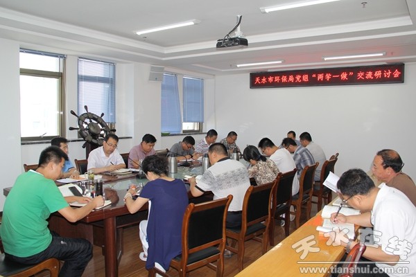 6月17日,天水市環(huán)保局黨組召開“兩學一做”學習交流討論會。會上,集體學習了《習近平談治國理政》一書“為建設美麗中國創(chuàng)造更好生態(tài)條件”、“努力走向社會主義生態(tài)文明新時代”、“為子孫后代留下天藍、地綠、水清的生產生活環(huán)境”等篇目;學習了《習近平總書記系列講話文章選編》——關于大力推進生態(tài)文明建設等章節(jié)內容。