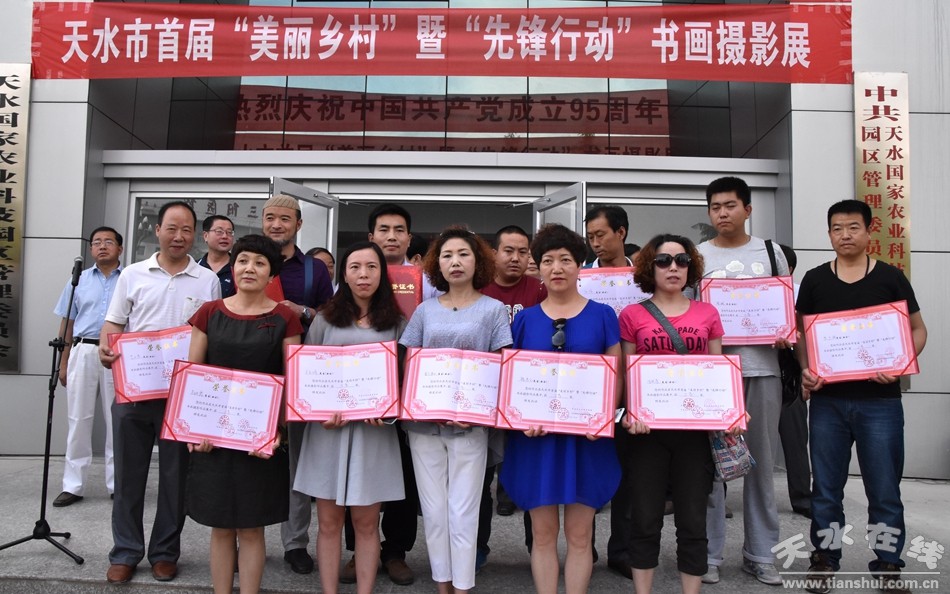本屆“美麗鄉(xiāng)村”暨“先鋒行動”書畫攝影作品展由市委組織部、市委宣傳部、市委農(nóng)工部和天水國家農(nóng)業(yè)科技園區(qū)管委會共同舉辦,旨在反映我市貫徹“創(chuàng)新、協(xié)調(diào)、綠色、開放、共享”的發(fā)展理念和“美麗鄉(xiāng)村”“美麗園區(qū)”建設(shè)工作中產(chǎn)業(yè)、生態(tài)、環(huán)境、文化等方面的特色亮點(diǎn),尤其是“先鋒行動”開展以來,精準(zhǔn)扶貧、廣大農(nóng)民群眾精神面貌等方面發(fā)生的深刻變化。共征集書畫作品280余幅、攝影作品354幅,展出書畫作品140余幅、攝影作品41幅。