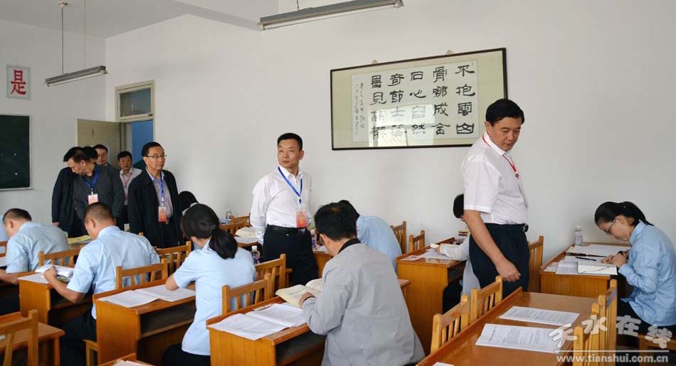 甘肅省高院黨組成員、副院長袁治云,天水市委常委、政法委書記趙衛(wèi)東,市人大常委會副主任黃孝榮,市政協(xié)副主席馬武生及法檢兩院、市委組織部、市財政局、市編辦、市人社局相關(guān)領(lǐng)導巡視了考場。