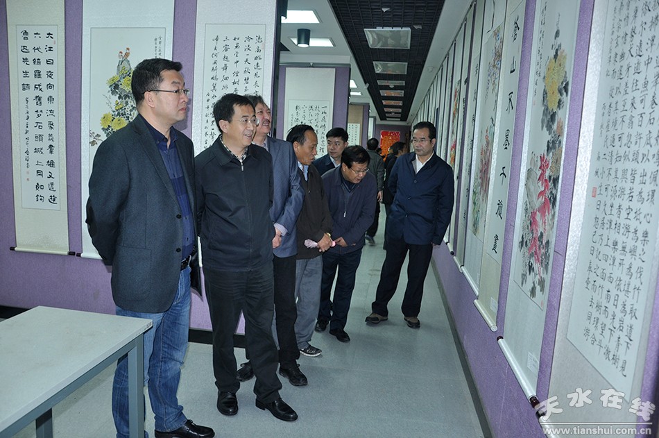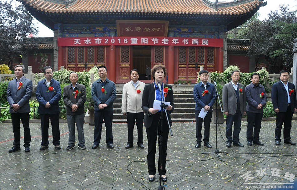 10月9日,由天水市老齡委、市老干局主辦,市老齡辦、老年書(shū)畫(huà)研究會(huì)、書(shū)畫(huà)院承辦的天水市2016年重陽(yáng)節(jié)老年書(shū)畫(huà)展在萬(wàn)壽宮隆重開(kāi)展。市委常委、組織部長(zhǎng)王光慶,市委常委、宣傳部長(zhǎng)王正茂,市人大常委會(huì)副主任王子生,副市長(zhǎng)溫利平,市政協(xié)副主席馬武生一同參觀了畫(huà)展。
