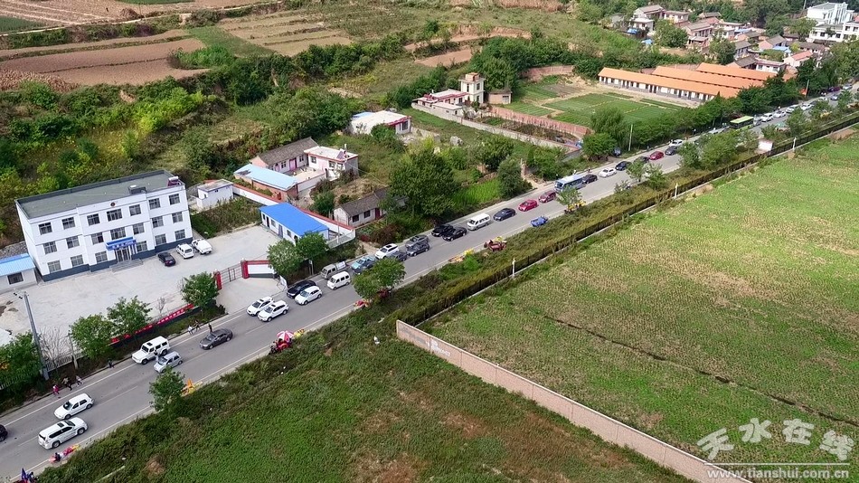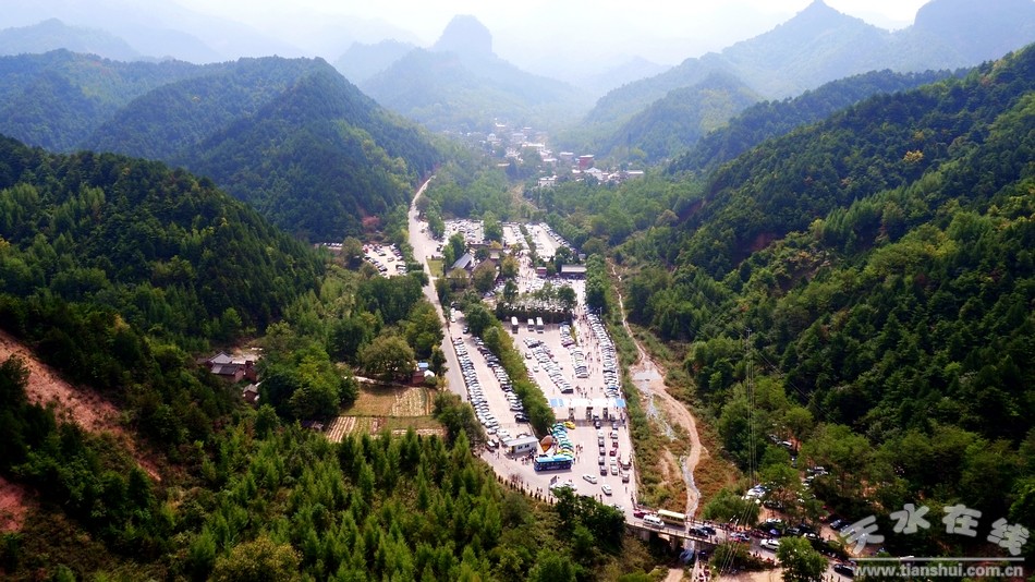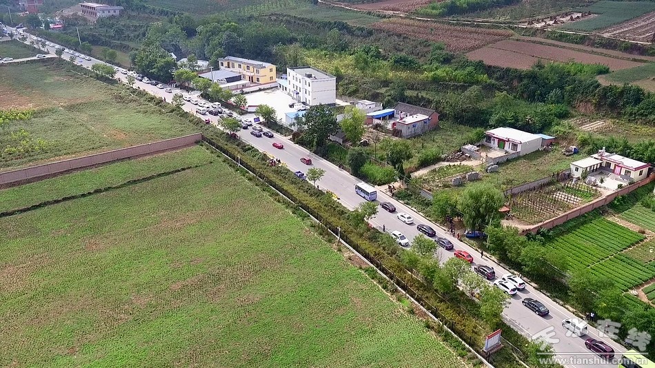 ▲麥賈公路上前往麥積山景區(qū)的車輛 天水在線2016年10月3日航拍 |