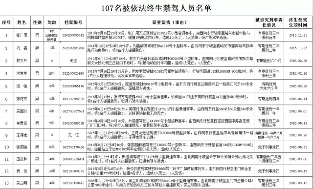甘肅省公安廳關(guān)于公布第四批終生禁駕人員名單的通告