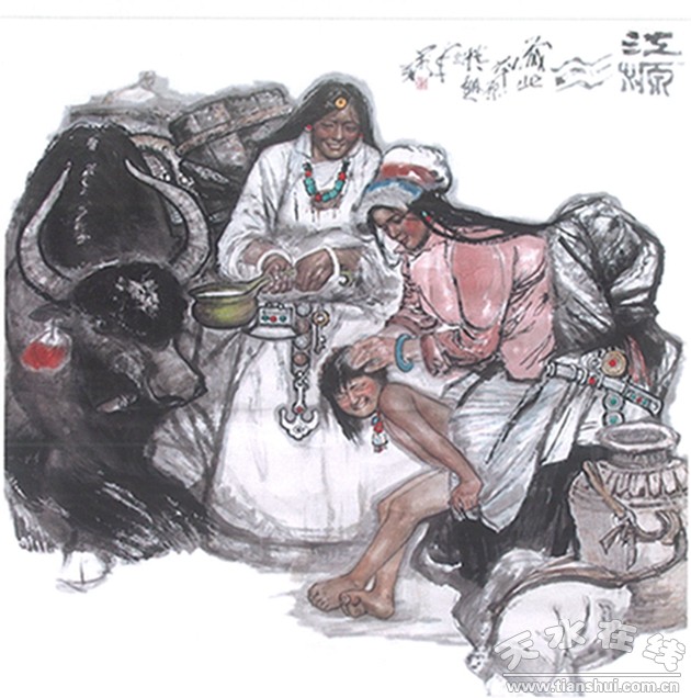 劉萬(wàn)年的西藏山水畫(huà),有鮮明強(qiáng)烈的地域特征;新穎別致的表現(xiàn)手法;正大陽(yáng)剛的民族氣度;雄渾壯闊的時(shí)代風(fēng)貌;肅穆淡遠(yuǎn)的宗教情懷;深邃沉靜的哲理思考;虔篤完美的神性境界,是中國(guó)當(dāng)代山水畫(huà)苑中的一朵奇葩。