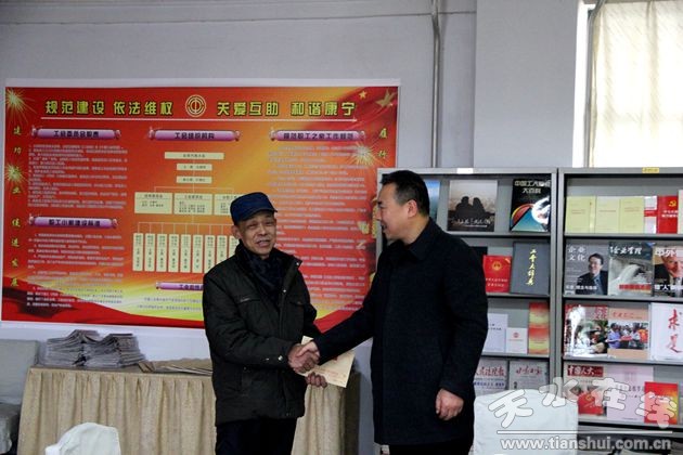 1月24日,天水市企業(yè)工委書(shū)記、工信委黨委書(shū)記、主任何曉斌,企業(yè)工委副書(shū)記曹秀明一行3人,代表市企業(yè)工委、市工信委對(duì)春風(fēng)紡織(集團(tuán))、長(zhǎng)城開(kāi)關(guān)廠、星火機(jī)床、天水長(zhǎng)城通用電器公司、七四五二廠、長(zhǎng)城儀器、典盛熱力等12戶企業(yè)的15戶困難黨員、老黨員和老干部進(jìn)行節(jié)前慰問(wèn)。