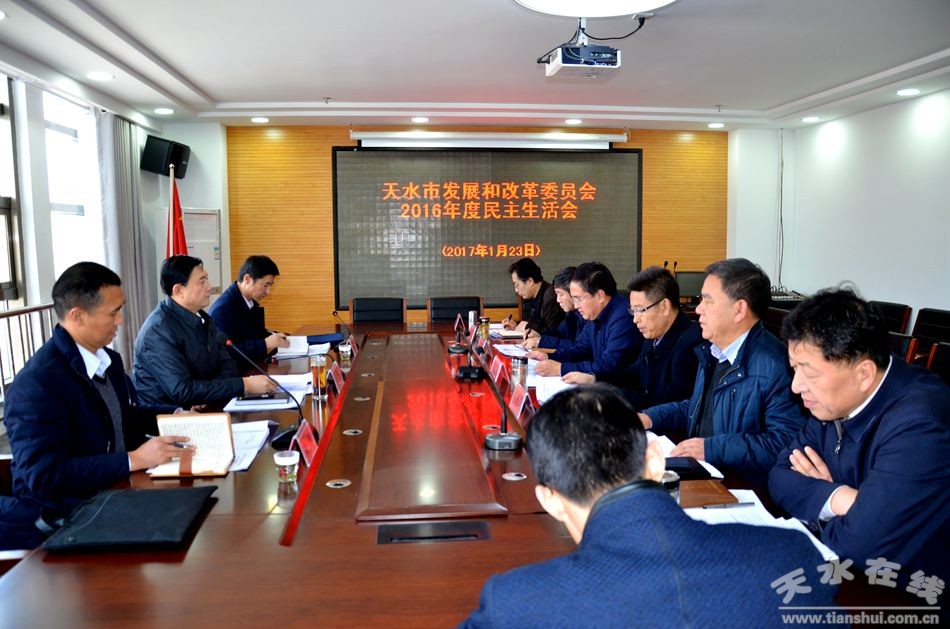 1月23日,天水市發(fā)展改革委召開2016年度專題民主生活會(huì)。市委常委、常務(wù)副市長(zhǎng)趙衛(wèi)東,市紀(jì)委紀(jì)檢監(jiān)察一室主任李順發(fā),市委組織部正縣級(jí)組織員陶勇出席指導(dǎo)會(huì)議。市發(fā)展改革委黨組書記、主任楊文元,黨組成員、副主任、市物價(jià)局局長(zhǎng)馬兆讓,黨組成員、副主任趙清,黨組成員、副主任、市政府項(xiàng)目辦主任李鳳奇,黨組成員、市機(jī)場(chǎng)遷建辦主任王天錄,黨組成員、副主任邵長(zhǎng)鋒,黨組成員、紀(jì)檢組長(zhǎng)王懷勝參加會(huì)議。
