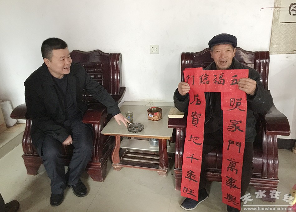 1月25日,天水市副市長郝文杰先后來到雙聯(lián)點娘娘壩鎮(zhèn)廟川村、藉口鎮(zhèn)緱家莊村,走訪慰問雙聯(lián)幫扶戶,了解他們的生產(chǎn)生活情況,并送上了自備的慰問金和新年的祝福。